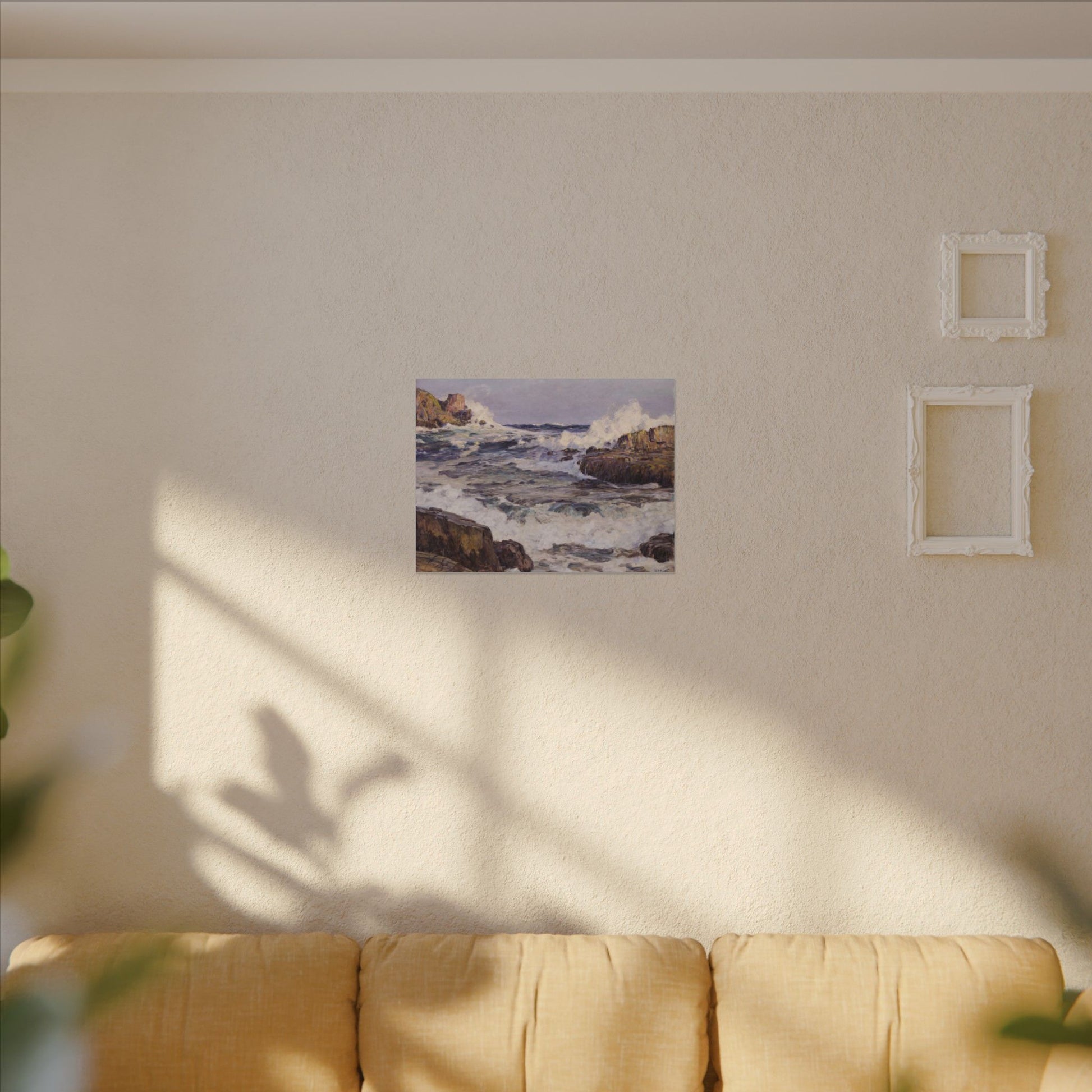 This canvas sits comfortably above a mantel, in a coastal cottage entry, or as a calm counterpoint in a modern living room. It’s for people who listen for the tide in quiet moments, who collect memories of wind, salt, and long walks on stone. The sturdy pine stretcher and subtle rubber feet make hanging simple and stable—so the view remains steady, like the ocean itself.